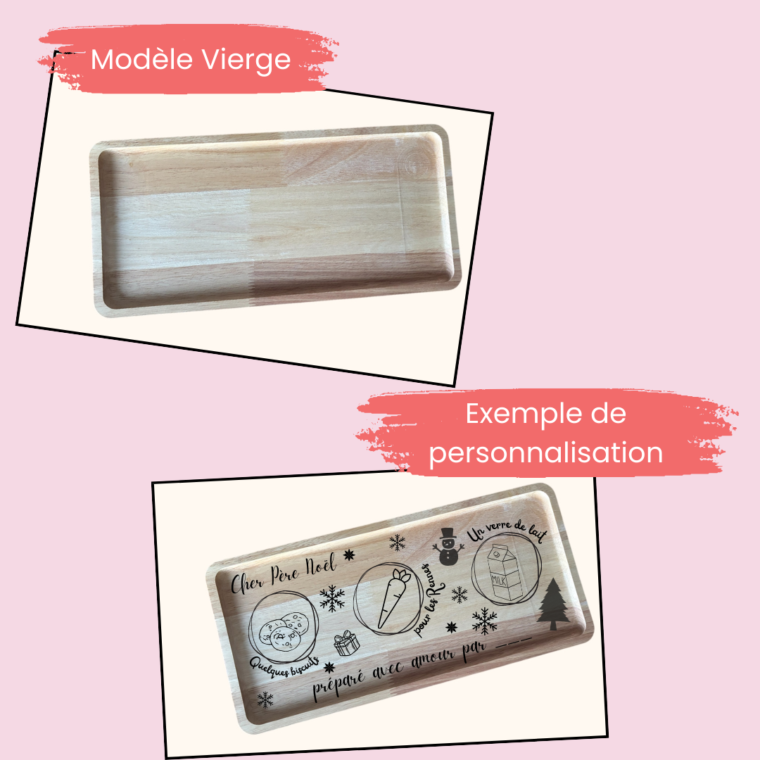 Plateau à personnaliser selon les fêtes et les saisons. Que ce soit pour le père Noël, la fête des mères ou un cadeau pour son parrain ce plateau se personnalise en fonction de vos envies.